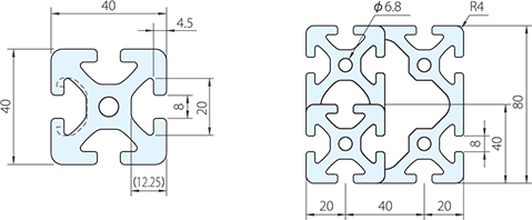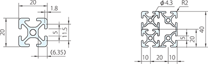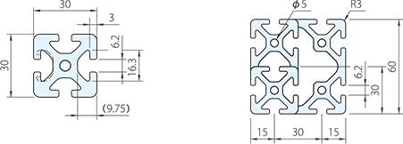プロファイルは3種類の規格寸法になっています。プロファイルの外形、溝ピッチの製作寸法精度は+-0.2~+-0.5mmです。