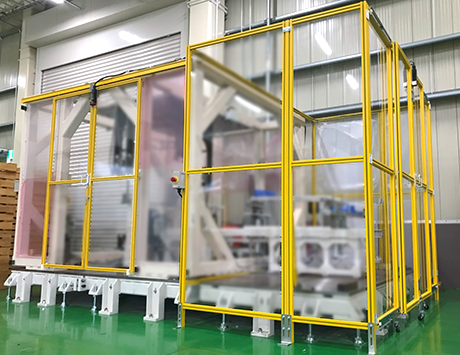同社では装置の安全設備としてミスミ安全柵を導入。製罐安全柵に比べて軽く、据え付けが簡単