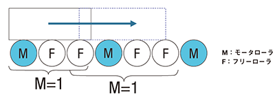 ・安定搬送条件2:モータローラが常時1本以上ワークに接する