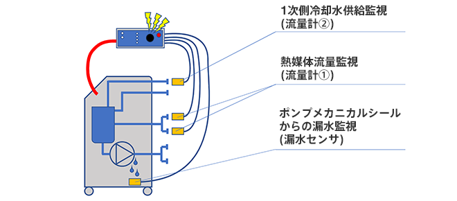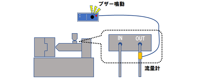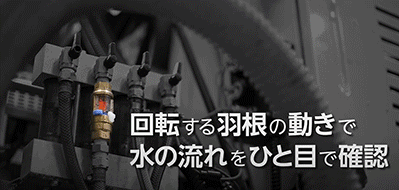 2色の羽根が回転し冷却水の流量を一目で確認、冷却管の目詰まり監視に!