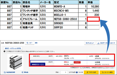 部品選定、CADデータの入手から見積もりまでCAD上で完結できます。