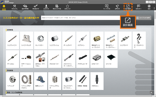 通常は、SOLIDWORKS上のRAPiD Designからインポートしたミスミ以外のメーカー品CADモデルを選択すると、設計画面に「商品詳細画面を開く」ボタンが表示され、