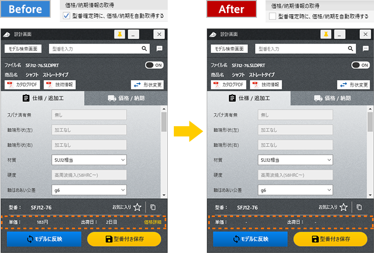 2「型番確定時に、価格/納期を自動取得する」の