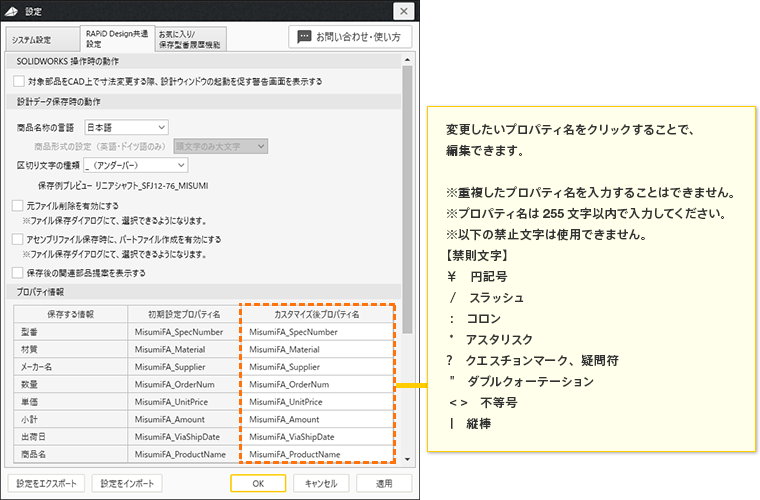 2「カスタマイズ後プロパティ名」の各項目をクリックすることで、テキストの編集が可能です。