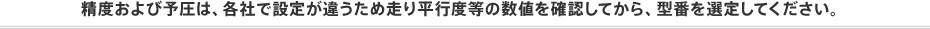 この精度の違いにより、走り平行度や高さ・幅のペア相互差の許容範囲も変わってくるので、装置やコストに見合ったものを選択する必要があります。