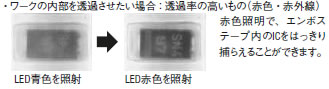 CCDカメラの分光感度特性(右図1)と、青・赤・白LEDの波長が適合する為、よりよい画像が得られます。