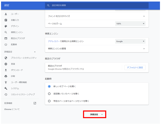 1. Chromeを起動し、画面右上にあるChrome メニューをクリックし、[設定]をクリックします。