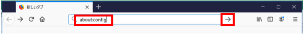 1.URL欄に「about:config」と入力し、[→]をクリックします。