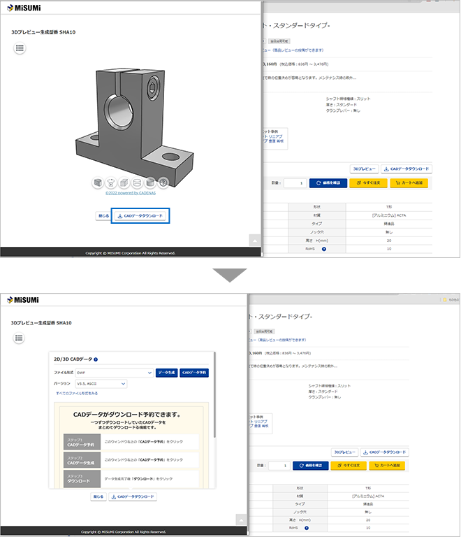 3「CADデータダウンロード」ボタンをクリックしてCADデータをダウンロードする