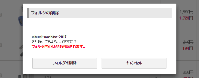 「削除」ボタンをクリックすると、フォルダが削除されます。