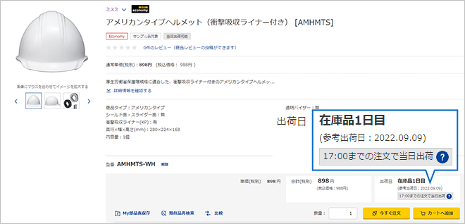 「当日出荷可能」と表記のある商品は、ご注文操作時にご指定いただくことで、当日出荷が可能です。