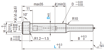 [ ! ] :P・K>D -0.05→ℓ=0 | 刃先形状 でP・K>D -0.05の場合、D -0.01/-0.03(導入部)はつきません。 |