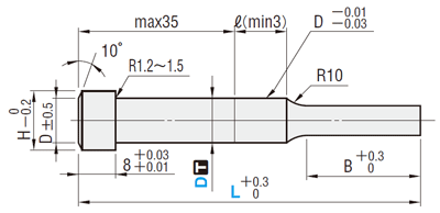 [ ! ] :P>D -0.03 →ℓ=0 | 刃先形状 でP>D -0.03の場合、D -0.01/-0.03(導入部)はつきません。 |