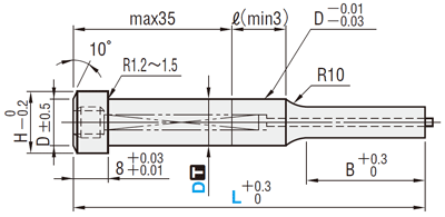 [ ! ] :P>D -0.03 →ℓ=0 | 刃先形状 でP>D -0.03の場合、D -0.01/-0.03(導入部)はつきません。 |