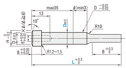 [ ! ] :P・K>D -0.05→ℓ=0 | 刃先形状 でP・K>D -0.05の場合、D -0.01/-0.03(導入部)はつきません。 |