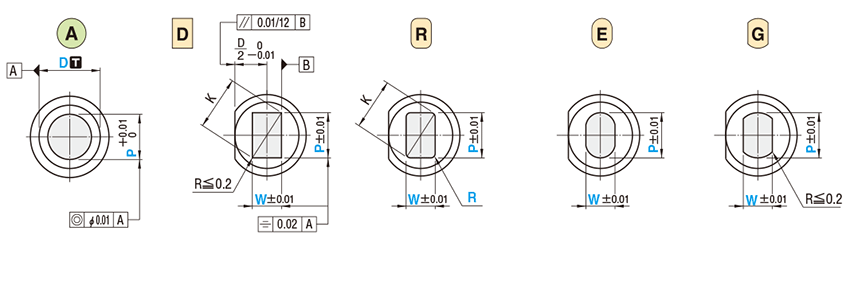![]() | PKC | 刃先交差変更 P+0.010 ⇒ +0.0050 (P寸法0.001mm単位指定可) | 刃先交差変更 P・W±0.01 ⇒ +0.010 | ||||