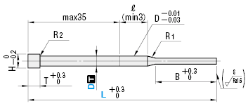 ![]() | TCC | ツバ部C面加工(C0.5) パンチ頭部の強度UPになります。 指定方法 TCC 0.5 [ NG ]H<2.6適用不可 | ||||||