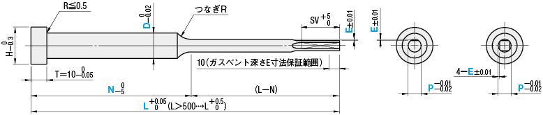 ガス抜き段付エジェクタピン -ハイス鋼SKH51/先端径・全長指定タイプ-
