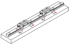 [ ! ]幅のペア相互差とは、1本のレールに組み合わされる複数のブロックと、レール間の幅寸法の最小値と最大値の差のことをいいます。