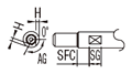 | SFC | 平面取り、角度指定2面取り追加![]() | SFC・SG=1mm単位指定 AG=15度単位指定 [ ! ]SG≦70 ※Hはこちらを参照 | SFRB30-300-F25-P20-M10-T25-S20-Q10-SFC10-SG3-AG120 | 500 | ||||||