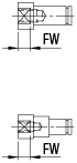 | 二面幅寸法変更追加工します。 指定1mm単位 指定方法 FW3 [ ! ]0≦FW≦15 [ ! ]FW=0の場合は二面幅なし。 [ ! ]標準・段付タイプに適用 | D寸部にすり割り追加工します。 指定方法 MM [ ! ]二面幅と同一面になりません。