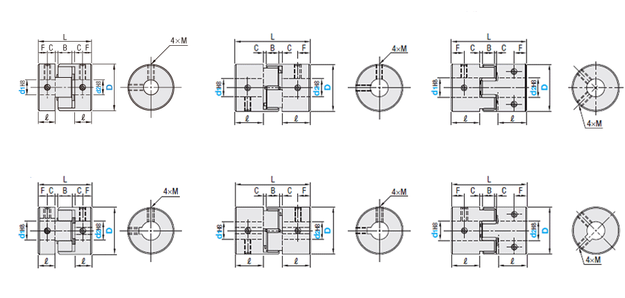 | 型式 | スペーサ (色選択) | d1,d2選択(ただしd1≦d2) | L | ℓ | B | C | F | セットスクリュー | ¥基準単価 | ||||||||||||||||||||||