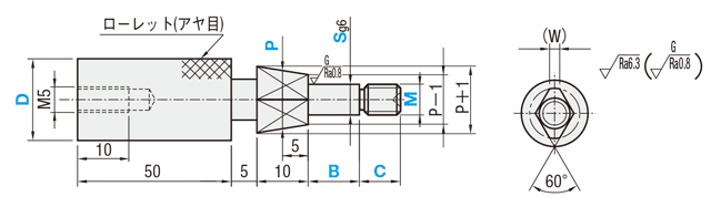 持ち手長さ変更![]() | ZC | 持ち手長さ50を10,20,30,40に変更します。 [ ! ]回転ダイヤは、持ち手長さ30,40のみ適用。 [ ! ]持ち手長さ10、20は、P≧5かつピン全長(10+L+B)≦30の場合のみ適用。 [ ! ]大頭型は持ち手長さ30, 40のみ適用。[ NG ]持ち手長さ10のとき、KHとの併用不可。 | 200 |