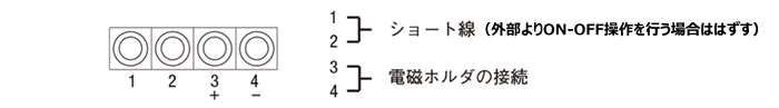 2:整流器内部の端子台3-4間に電磁ホルダのリード線を結線してください。