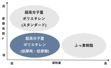| 超高分子量ポリエチレン (低摩耗・低摩擦) | TULTS | 0.10 | 10 | - | 100 | - | ○ | ○ | ◎ | ○ | ○ |
