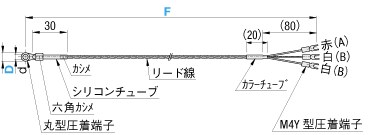 | リード線 (使用温度範囲) | ガラスウール被覆+外シールド (0~250℃) | ふっ素樹脂被覆 (0~200℃) |