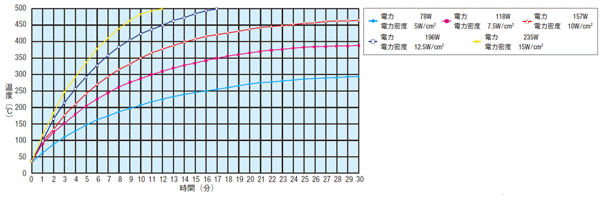 ※上記デー夕は、ヒータ自体の温度と被加熱物との温度差を示したものです。