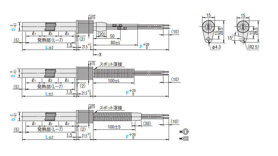 カートリッジヒータ L型タイプ(均熱、断線防止)Φ6~Φ16