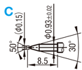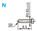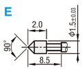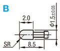 | 型式 | 先端形状 | 最小取付ピッチ* | フルストローク | スプリング圧 | 許容電流 | 抵抗値 | 交換 目安回数 | ¥基準単価 | ¥スライド単価 | ||