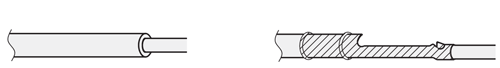 [ ! ]NR120 ハンダ・カシメタイプとは、リード線素線を末端部のΦ0.97穴に入れてハンダを流し入れて固定するか、