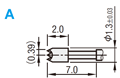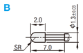 [ ! ]B:ハンダ・カシメタイプとは、リード線素線をB形状のΦ0.93穴に入れてハンダを流し入れて固定するか、