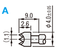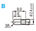 [ ! ]B:ハンダ・カシメタイプとは、リード線素線をB形状のΦ2.14穴に入れてハンダを流し入れて固定するか、