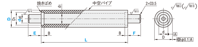 長さ指定が可能なパイプローラーです。軸が接合済のため、部品点数の削減ができます。