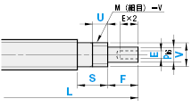 | Type | 左形状 支持側 | 右形状 固定側 | ねじ軸 外径 | リード | L | F | P | S | U | C | KC | SC | X | Z | V | E(並目) | G | K | J | JC | H | Y | R | W | Q | N(並目) | ||||||||||