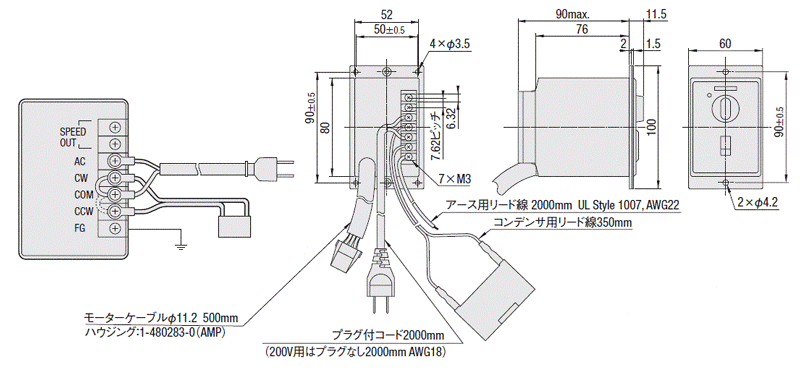 | 60W | スピードコントロールモータ | 単相100V | US560-501C | 5GU□□KB | PACMSV-UT90-W60-V100 | PACMGZT90-□□ |