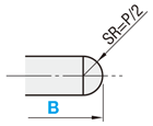 | 型式 | D | D寸公差 | L 指定0.5mm単位 | P 指定0.1mm単位 | P寸 公差 | B 指定0.5mm単位 | H 指定0.1mm単位 | T 指定0.5mm単位 | E 指定0.5mm単位 (テーパ形状のみ) | R | M 並目 | |||