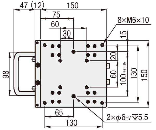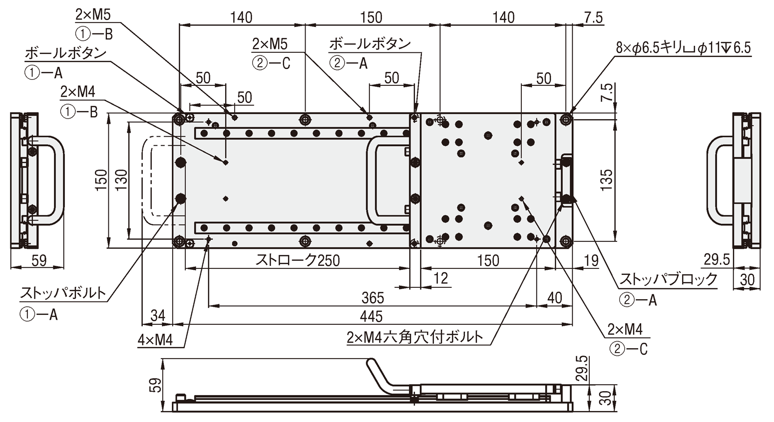 詳細情報を確認するJGL150![]() | クランプ部分拡大図 (正面より)![]() プランジャ先端のボールが、ボールボタンの 凹みに乗り上げることでテーブルが固定されます 取付穴寸法 (共通) ![]() ストローク調整方法