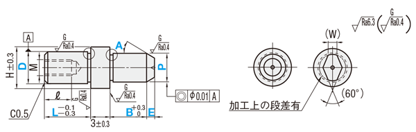 | HC | 二面幅加工を追加![]() | HC=指定0.5mm単位指定 [ ! ]HC>D HC>P | KFHTAMS6-P6.00-L6-B3.0-E3.0-A3.O-HC7 | 500 |