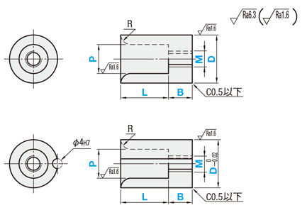 | 溝追加工 (抜け止め防止) | ![]() | NC | 抜け止め防止の溝加工を追加します。 [ ! ]D≧P+3:ブッシュの肉厚が1.5ミリ [ ! ]ストレートはL+B≧10、 | 300 |