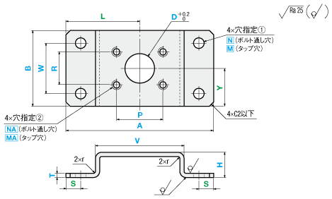 | T | N・NA(ボルト通し穴) | M・MA(タップ穴) |