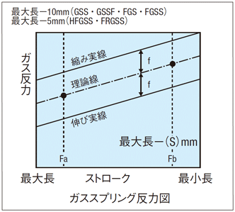 ガス反力は±15%程の公差があります。3.必要の反力(F×1.1)がガススプリングの最大長-( )mm時の反力より大きい時は2本以上使用してください。