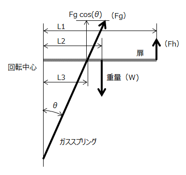 2.選定するガススプリングの反力は、Fg×1.1以上にしてください。