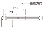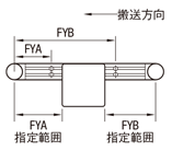 [ NG ]中間駆動コンベヤは駆動部内のザグリ穴指定不可。 | FYA FYB | 追加でナット挿入用のザグリ穴を手前と奥のフレームに加工します。 指定方法 FYA300 [ ! ]FYB-FYA≧15(ヘッド駆動コンベヤのみ) [ ! ]指定範囲は左記表となります。 [ ! ]GVTSA・GVTSN・CVSPCにおいては、フレーム両側の同位置にザグリ穴が加工されます。 [ ! ]GVTWAU・GVTWAS・GVTWNU・GVTWNSにおいては内側フレーム溝およびフレームジョイント位置にザグリ穴は加工されません。 | 1,200 |