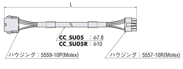| 6W 25W | 1m | CC-1 | モーター側 コントロールユニット側 ![]() | CC01SU05 | モーター側 スピードコントローラ側 ![]() |