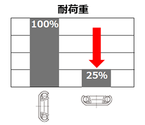 垂直、平行に取付いている![]() | スライドレールが垂直に取付いていない![]() | スライドレールが同一水平線上にない![]() | 水平取付で離れた重心に力をかける![]() |