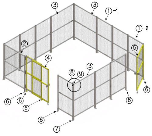 [ ! ]本製品は図中央の扉部分のみのユニットです。図の左右に記載のある安全柵は付属しません。